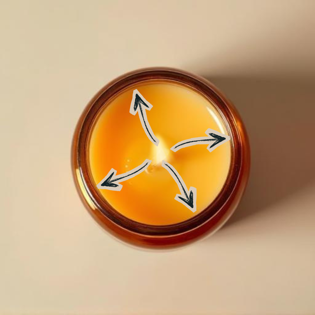 Let the candle burn until the melted wax reaches the edges of the container. This prevents tunnelling and ensures the wax burns evenly.